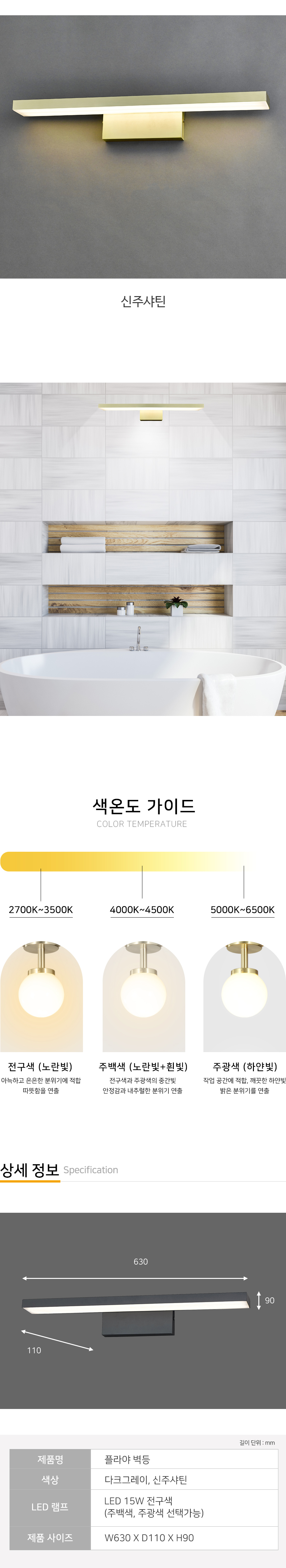 램프 LED 15W 전구색 (주백색,주광색 주문제작 3일 소요) 사이즈 W630*D110*H90(mm)