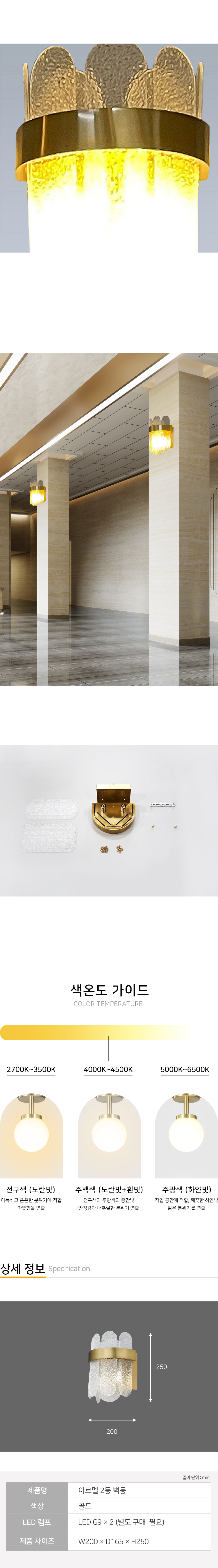 램프 LED G9*2 (별도 구매 필요) 사이즈 W200*D165*H250