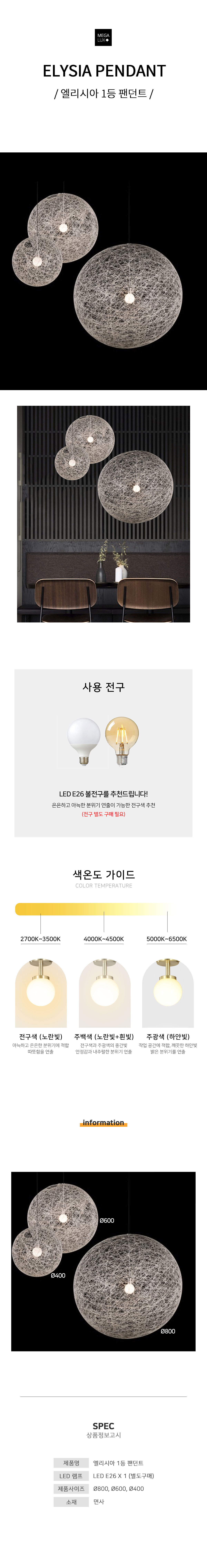 [주문제작상품 3주] 램프 LED E26*1 사이즈 Ø800, Ø600, Ø400