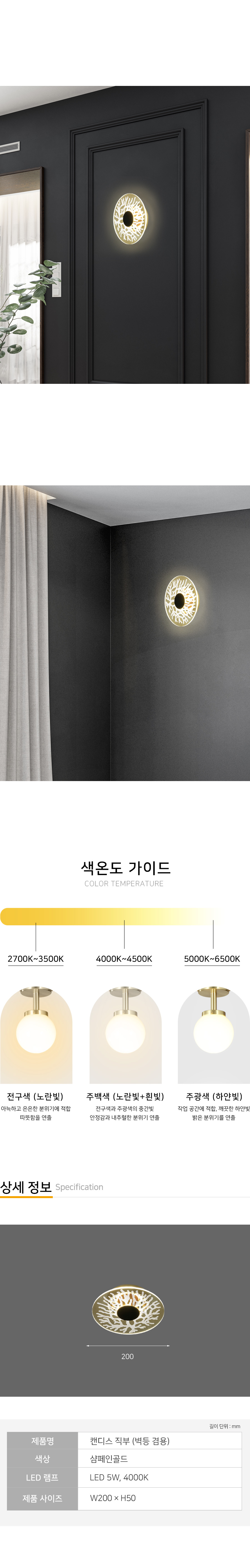 램프: LED 5W, 4000K 사이즈: W200*H50